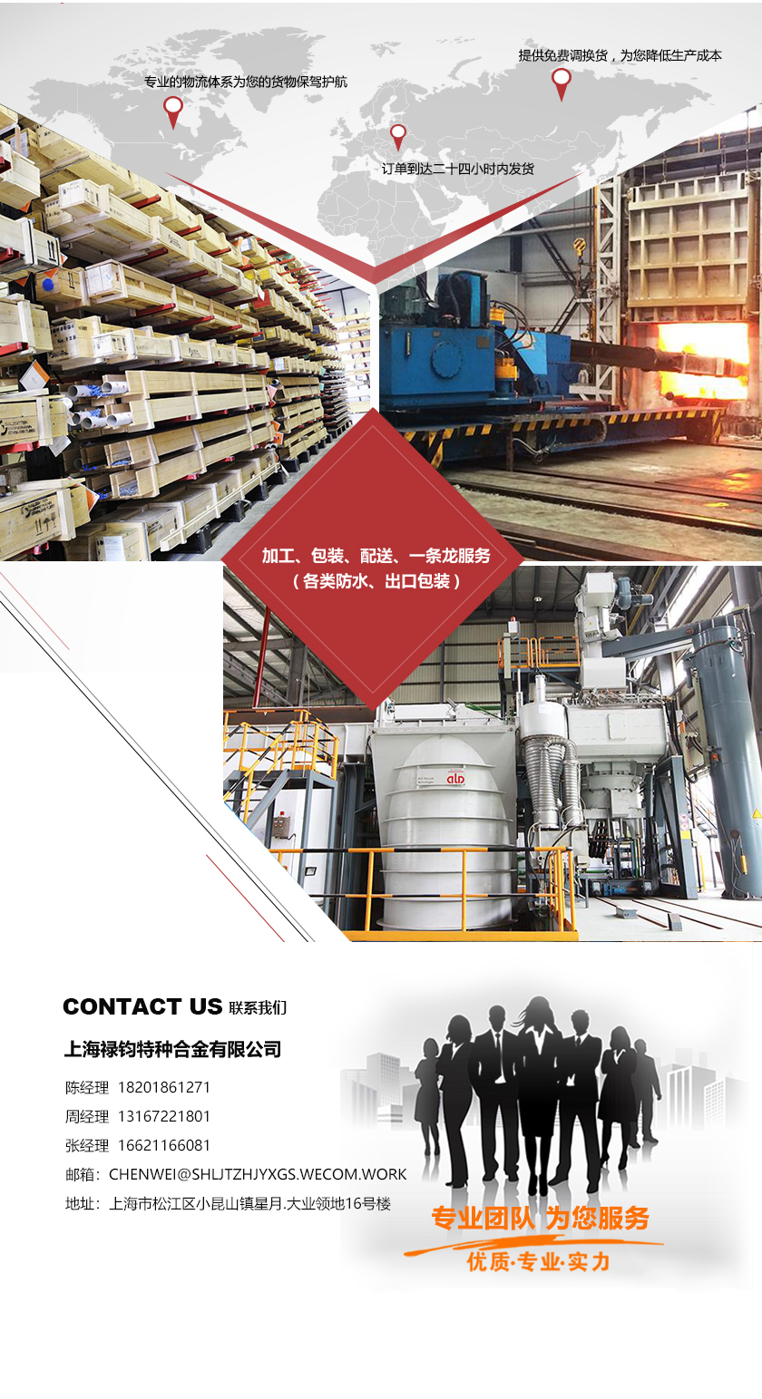 主营产品: X2CrNiMoCuN25-6-3/SUS329J4L板棒 S32550/Alloy255/03Cr25Ni6Mo3Cu2N板棒 UNS N07041/Rene 41/Carpenter41/GH4141 254SMO/S31254板棒管丝带 TC4ELI钛棒 30CrMnSiA无缝钢管 GH1139军标圆钢 N06686/Inconel686无缝管 GH4133板棒 GH7186A圆棒 X8NiCrAITi 32-21 X5NiCrAITi 31-20 1Cr5Mo 022Cr25Ni22Mo2N MONEL400 NS333 GH3030 GH4220 Cr20Ni80 X1NiCrMoCu32-28-7 X1NiCrMoCu NA15 NA16 NiCr22Mo9Nb Hastelloy B-2/HC-B2 GH2747 1.4521 SUS316Ti 1.4436 X3CrNiMo17-13-3 1.4404 X2CrNiMo17-12-2 1.4547 X1CrNiMoN20-18-7 254SMO 1.4466 X1CrNiMoN25-22-2 1.4845 SUS310S X2CrNiMo18-15-4 1.4429 X2CrNiMoN17-13-3 SUS316LN 1.4436 X6CrNiMoTi17-12-2 1.4833 1.4311 SUS309S X2CrNiN18-10 SUS304LN 1.4948 X6CrNi18-10 SUH304H 1.4306 X2CrNi19-11 SUS304L 1.4301 X5CrNi18-10 1.4305 SUS303 X8CrNiS18-9 X3CrNiN17-8 X2CrNiMoWN25-7-4 X3CrNiMo13-4 SUH446 SUS416 SUSF6NM X2CrMoTi18-2 SUS420J2 X30Cr13 X17CrNi16-2 SUS440A SUS440C 1.4057 X105CrMo17 SUS301 1.4319 X14CrMoS17 N6 1.4031 SUH600/2Cr12MoVNbN NS321 SUS440B SUS434 SUH616 1.4313 X40CrSiMo10 42Cr9Si2 NS313 1.4731 X39Cr13 X5CrNiCuNb16-4 1.4542 SUS631 1.4501 X7CrNi17-7 NS111 1.4104 SUS630 SUS304 SUS420J1 1.4512 NS143 X2CrNiMoN25-7-4 X8CrNiMoAl15-7-2 1.4532 SUH660 NS142 GH4080A NS336 HC-22 NS322 NS334 GH4648 lncoloy20 NS312 00Cr14Ni14si4 Inconel718 HC-4 MonelK500 GH3113 RA330 HC-B3 Inconel X-750 40CrNi2Si2MoVA/300M Inconel625 Inconel617 GH4698 GH4163 Inconel601 GH4720 253MA GH2901 Alloy230 GH4738 GH6783 GH5188 Inconel690 GH3007 GH4098 GH3044 GH4214 GH5605 GH2150 GH3230 GH2135 GH2132 GH3039 GH4141 GH3536 GH4145 GH4202 GH1131 GH1015 GH3128 GH4090 GH4169 GH4099 Inconel600 Incoloy600 Incoloy825 GH4049 N05500 N04400 HC-276 lncoloy800H 蒙乃尔K500 蒙乃尔400 N02080 N08028 N08020 N010276 N06600 N06601 1.4529 AL-6XN Inconel926 Hastelloy 230 Inconel925 Hastelloy G-30 Hastelloy X Hastelloy G-35 Hastelloy N Hastelloy B3 Hastelloy B2 Cr15Ni60 0Cr27Al7Mo2 Cr20Ni35 0Cr25Al5 0Cr21Al6Nb N08810 N08800 N08825 N08811 Alloy28 N06690 N10001 N06625 N06455 N02200 N02201 N01665 N10675 N08926 N06022 N06200 NCF800 ALLOY20 NCF825 NCF600 NCF625 HastelloyC4 Hastelloy C2000 1.4876 Y12Cr18Ni9 2.4858 06Cr19Ni10 2.4660 2.4816 2.4617 022Cr19Ni10 07Cr19Ni10 2.4819 2.4610 2.4856 022Cr19Ni10N 2.4360 2.4060 06Cr25Ni20 2.4602 06Cr23Ni13 015Cr20Ni18Mo6CuN 2.4675 022Cr17Ni12Mo2 W.Nr.1.4876 X10NiCrAITi3220 07Cr17Ni12Mo2 ZN8NC32.21 06Cr17Ni12Mo2Ti 06Cr17Ni12Mo2N W.Nr.1.4958 Nicr21Mo 12Cr17Ni7 NS112 022Cr17Ni12Mo2N NiCr20CuMo 015Cr21Ni26Mo5Cu2 022Cr19Ni13Mo3 NiCr23Fe NC15Fe NC23FeA NC22DNb NiCr15Fe7TiAl NCF750 NiCr15Fe R30605 AWS A5.14ERNiMo-2 SUS410S SUS430LX X6CrMo17-1 1.4410 1.4104 SUS444 SUS316L X3CrTi17 SUS430F X6Cr17 X2CrTi12 SUH409L 1.4016 X2CrNiN23-4 SUS410L SUS430 1.4362 1.4434 X6CrNiTi18-10 SUS317L X2CrNiMoN18-12-4 SUS316N SUS321H 1.4541 X1CrNiMoCuN24-22-8 654SMO 1.4541 X12CrNiSi35-16 1.4828 X6CrNiTi18-10 X2CrNiMoN22-5-3 1.4841 1.4864 1.4652 X7CrNiNb18-10 SUH330 X15CrNiSi20-12 1.4912 SUS347H SUS329J3L X15CrNiSi25-21 1.4462 SUS321 022Cr19Ni13Mo4N 06Cr18Ni11Ti 07Cr19Ni11Ti 015Cr24Ni22Mo8mN3CuN 12Cr16Ni35 07Cr18Ni11Nb 16Cr20Ni14Si2 16Cr25Ni20Si2 022Cr22Ni5Mo3N 022Cr23Ni5Mo3N 022Cr23Ni4MoCuN 022Cr25Ni7Mo4N 022Cr25Ni7Mo4N 022Cr11Ti 022Cr12 10Cr17 Y19Cr17 022Cr18Ti 10Cr17Mo 019Cr19Mo2NbTi 16Cr25N 16Cr25N 06Cr13 12Cr13 04Cr13Ni5Mo Y12Cr13 20Cr13 30Cr13 40Cr13 14Cr17Ni2 68Cr17 1.4954 85Cr17 108Cr17 Y108Cr17 102Cr17Mo 90Cr18MoV 18Cr12MoVNbN 22Cr12NiWMoV 13Cr11Ni2WMoV 04Cr13Ni8Mo2Al 022Cr12Ni9Cu2NbTi 05Cr15Ni5Cu4Nb 05Cr17Ni4Cu4Nb 07Cr17Ni7Al 07Cr15Ni7Mo2Al 06Cr15Ni25Ti2MoAlVB 40Cr10Si2Mo 14Cr12Ni2WMoVNb 4J52低膨胀合金 6J20精密电阻合金 6J15精密电阻合金 6J10精密电阻合金 6J22精密电阻合金 3J21精密弹性合金 2J85 1J117 1J22 1J85 1J79 4J32 4J36 4J33 QSn4.4-2.5 QSn7-0.2 HPb62-2 QSn6.5-0.4 QAl10-3-1.5 QSn10-1 QAl10-3 QSn4-4-2.5 QSn6-6-3 C12200 C11000 C12000 ZQSn10 HPb58-3 Hpb59-1 QAl10-4-4-2 QAl9-4-4-2 QSn4-4-2.5 QBe2.0 QSn7-0.3 C17300 QSn4-0.3 QSn4-3 QSn5-5-5 C12200 QSn4-4-4 ZQSn6-6-3 ZQSn5-2-5 QAl9-2 QSn4-3 QAl10-5-5 QCr0.5 QCr0.6-0.4-0.05 C18400 C18500 2Cr3WMoV军标圆棒 CuAl10Ni5Fe4 QA110-5-5 QAl10-4-4 QAl0-5-5 2.0966 C93200 C1020P NiFe50/50H C54400 1J50 4J50 Nilo42 Vacodil 42 C7521 4J42 UNS K93601 C7701 C5210 Fe-Ni36 C5191 Invar36 W. Nr.1.3912精密合金 TUP TP1 TU2 TU0 4J29 TU1 C1020 T3 T2 T1 C22000 C26000 C1100 C36800 C3604 C10300 C3602 C3603 C36000 C2720 07Cr16Ni6军标圆棒 C2800 C2700 C2801 C2600 CuSn10Pb10 C2680 H96 H90 H85 H80 H70 H68 H65 H63 H62 H59 QAl9-4 QSn6.5-0.1 C17510 C17500 CuW70 C17200 C67500 C95400 C95700 B30 B10 C71500 C27200 C70600 1Cr16Co5Ni2Mo1WVNbN军标圆棒 C18150 C15740 C15725 20CrMnTiH 15CrMoG 15CrMoR T91 12Cr2Mo 10CrMo9-10 P92 WB36 T92 C15760 Ti5Al5Mo5V1Cr1Fe钛合金 ZR702/R60702纯锆 Ti1300钛合金 Ti7333钛合金 Ti150钛合金 Ti2AlNb合金 Ti80钛合金 P5 T12 12Cr1MoVG T11 T9 Ti75钛材 Ti70钛材 Ti60钛材 Ti55钛材 Ti35钛材 Ti31钛材 Ti55531钛材 Ti5553钛材 TB8、TB9钛材 TB7钛材 P12 20CrMo 30CrMo P9 TB6钛材 TB3钛材 P22 17CrNiMo6 18CrNiMo7-6 19CrNi5H P11 TB2钛材 Ti17钛材 30CrNiMo8 1.6580(42CrMo4) 5CrMnMo BT14钛材 TC30钛材 TC26钛材 TC25钛材 18CrNi2W4 20CrNi4A 1.5752 TC20钛材 05CuPCrNi 40CrNi2Mo(4340) 09CrCuSb(ND钢) CORTEN-A(09CuPCrNi-A)考登钢 B450NQ考登钢 TC19钛材 TC18钛合金 TC17钛合金 TC16钛合金 M42(W2Mo9Cr4VCo8) 25Cr2Mo1VA 45CrNiMoVA M35 35CrMoVA P91 F22 20G 09MnNiD W6(W6Mo5Cr4V2) W18Cr4V(W18) GCr15 退火 TC11钛合金 TC10钛合金 TC9钛材 TC8钛材 35# TC6钛合金 TC3钛合金 20# 45# TC2钛合金(Ti-3Al-1.5Mn) TC1钛材 A105 TA31钛合金 TA24钛合金 TA22钛材 TA19钛材 TA18钛材 20MnCr5H TA17钛合金 T8A 16MnCr5H TA15钛材 60Si2Mn 65Mn TA11钛材 TA10钛材 GCr15 T10A 1Cr9Mo H13 TA9钛合金 Cr12MoV 15CrMo Cr12 TA7钛合金 42CrMo 35CrMo TA6钛合金 TA5钛合金板 TA2钛合金 TA1钛合金 Gr7钛合金 40Cr TB6钛合金 20Cr 38CrMoAl TC21钛合金 40CrNiMo TC4钛合金 Gr12钛合金 Gr5钛合金 Gr2钛合金 34CrNiMo6 Gr1钛合金 SAE8620H 20CrNiMo